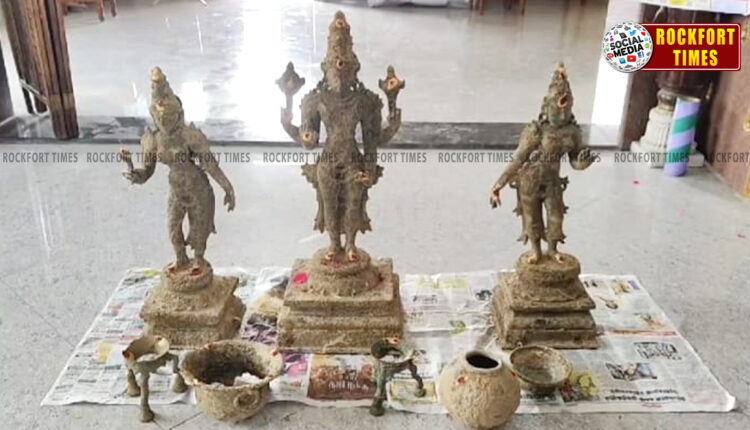 திருச்சி, மண்ணச்சநல்லூர் அருகே பல கோடி ரூபாய் மதிப்புள்ள 3 ஐம்பொன் சுவாமி சிலைகள் கண்டெடுப்பு…!( வீடியோ இணைப்பு)