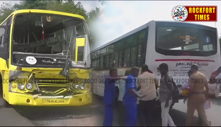 திருச்சி, கூத்தூர் அருகே 3 தனியார் கல்லூரி பேருந்துகள் அடுத்தடுத்து மோதல்… * அதிர்ஷ்டவசமாக உயிர் தப்பிய மாணவர்கள்! (வீடியோ இணைப்பு)