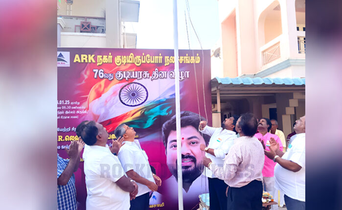 திருச்சி-சென்னை பைபாஸ் சாலை அருகே உள்ள ஏ.ஆர்.கே.நகர் குடியிருப்போர் நலச்சங்கம் சார்பில் 76-வது குடியரசு தின விழா இன்று(26-01-2025) சிறப்பாக கொண்டாடப்பட்டது.