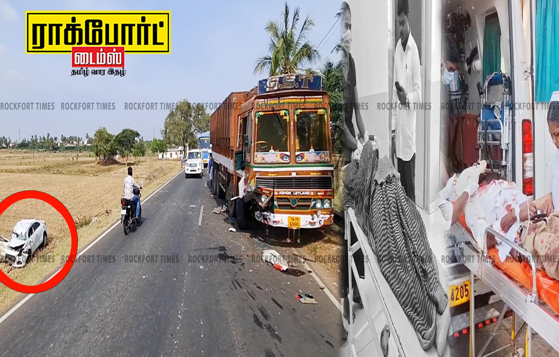 கர்நாடக மாநிலம், பெங்களூருவை சேர்ந்தவர் கணேசன் (69). இவர் தனது மனைவி ராதிகாவுடன் (66) திருச்சி மாவட்டம், ஸ்ரீரங்கத்தில் உள்ள அம்மா மண்டபத்தில் திதி கொடுப்பதற்காக இன்று( ஏப்.29) காரில் புறப்பட்டு வந்து கொண்டிருந்தார். காரை, கிருஷ்ணன் என்பவர் ஓட்டினார். திருச்சி – நாமக்கல் சாலையில் முசிறி நகர பேருந்து நிலையம் அருகே கார் வந்து கொண்டிருந்தபோது எதிர்பாராத விதமாக டிரைவரின் கட்டுப்பாட்டை இழந்து திருச்சியில் இருந்து நாமக்கல் நோக்கி சென்ற லாரி மீது மோதியது, மோதிய வேகத்தில் கார் அந்தரத்தில் பறந்து சென்று வயலில் விழுந்தது. இதில் கார் அப்பளம் போல் நொறுங்கியது. இந்த விபத்தில் படுகாயமடைந்த ராதிகாவை அருகில் இருந்தவர்கள் மீட்டு முசிறி அரசு மருத்துவமனைக்கு அனுப்பி வைத்தனர். ஆனால் அங்கு சிகிச்சை பலனின்றி அவர் பரிதாபமாக உயிரிழந்தார். உயிருக்கு ஆபத்தான நிலையில் இருந்த டிரைவர் கிருஷ்ணன் மேல்சிகிச்சைக்காக திருச்சி அரசு மருத்துவமனைக்கு கொண்டு செல்லப்பட்டார். கணேசன் லேசான காயங்களுடன் முசிறி அரசு மருத்துவமனையில் சிகிச்சை பெற்று வருகிறார். இந்த விபத்து குறித்து முசிறி போலீசார் வழக்கு பதிந்து விசாரணை மேற்கொண்டு வருகின்றனர்.