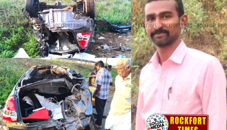 திருப்பூர் மாவட்டம், உடுமலைப்பேட்டையைச் சேர்ந்தவர் தவசிமணி (44). நாளிதழ் ஒன்றில் செய்தியாளராக வேலை பார்த்து வந்தார். இவரும் அதே ஊரைச் சேர்ந்த பிரவின் (26) என்பவரும் காரில் உளுந்தூர்பேட்டை நோக்கி சென்று கொண்டிருந்தனர். திண்டுக்கல்-திருச்சி தேசிய நெடுஞ்சாலையில் திருச்சி மாவட்டம், மணப்பாறையை அடுத்த மஞ்சம்பட்டி அருகே சென்று கொண்டிருந்தபோது கட்டுப்பாட்டை இழந்த கார் சாலையோரத்தில் இருந்த தடுப்பு கட்டையை உடைத்துக் கொண்டு தலைகீழாக கவிழ்ந்தது. இந்த விபத்தில் தவசிமணி சம்பவ இடத்திலேயே உயிரிழந்தார். படுகாயமடைந்த பிரவின், மணப்பாறையில் உள்ள தனியார் மருத்துவமனையில் சேர்க்கப்பட்டார். இந்த விபத்து பற்றி தகவல் அறிந்த மணப்பாறை போலீசார், சம்பவ இடத்திற்கு சென்று இறந்தவரின் உடலை கைப்பற்றி பிரேத பரிசோதனைக்காக மணப்பாறை அரசு மருத்துவமனைக்கு அனுப்பி வைத்தனர். விபத்தில் சிக்கிய காரை அங்கிருந்து அப்புறப்படுத்தினர். மேலும், இந்த விபத்து குறித்து வழக்கு பதிவு செய்து விசாரணை நடத்தி வருகின்றனர்.