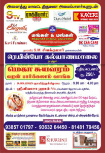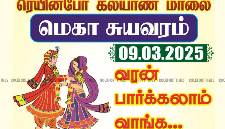 வரன் தேடுவோருக்கு முத்தான வாய்ப்பு: ரெயின்போ கல்யாண மாலை நடத்தும் மெகா சுயவரம்- திருச்சியில் மார்ச் 9ம் தேதி நடக்கிறது…!