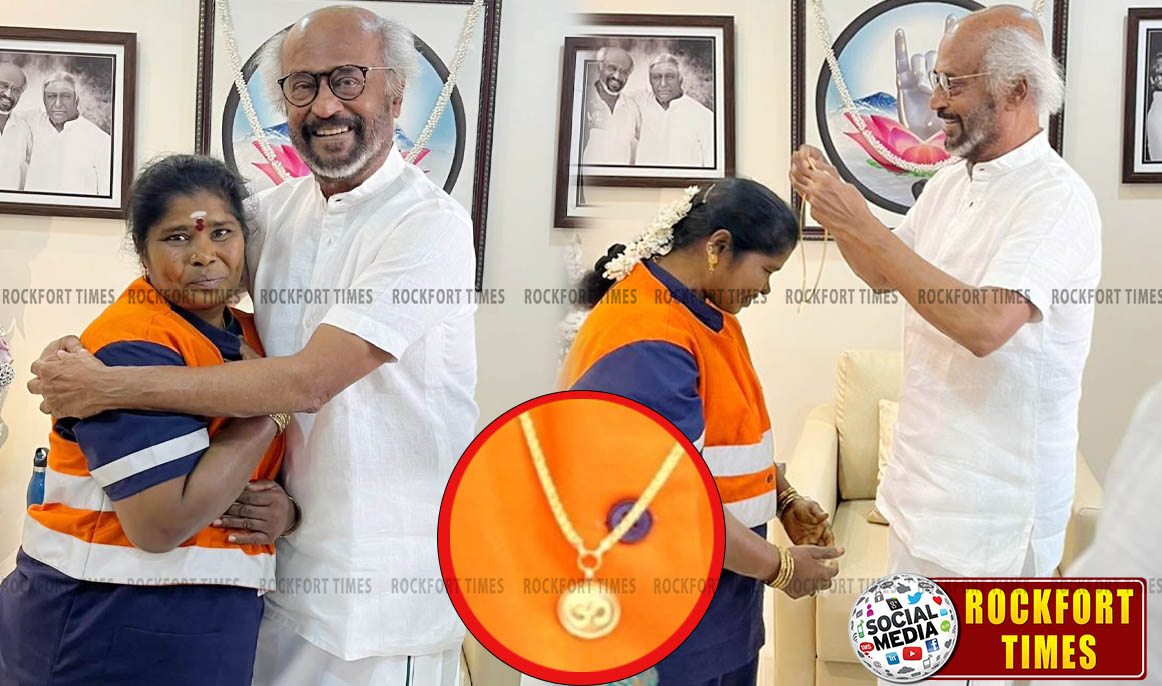 கீழே கிடந்த 45 பவுன் நகைகளை எடுத்து நேர்மையுடன் ஒப்படைத்த பெண் தூய்மை பணியாளர்:* தங்கச் சங்கிலி அணிவித்து ரஜினிகாந்த் பாராட்டு…!
