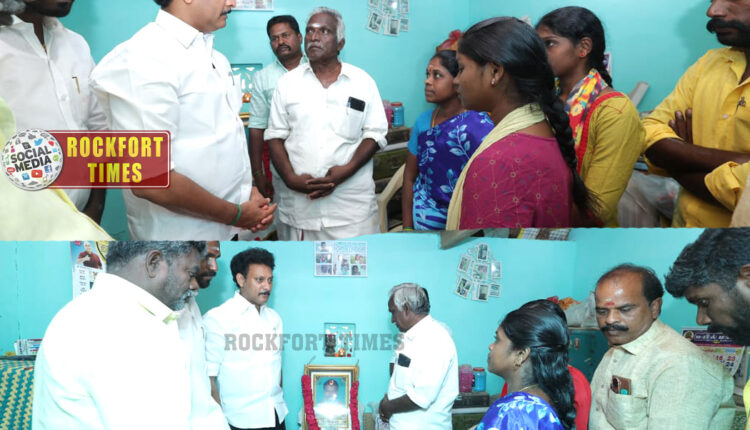 திருச்சி, திருவெறும்பூர் அருகே தந்தை இறந்த துக்கத்திலும் தளராமல் தேர்வெழுதிய பள்ளி மாணவி..!- நேரில் சென்று ஆறுதல் கூறிய அமைச்சர் அன்பில் மகேஷ் பொய்யாமொழி