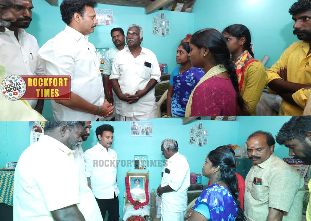 திருச்சி, திருவெறும்பூர் தொகுதி திமுக எம்எல்ஏவும் தமிழக பள்ளிக்கல்வித்துறை அமைச்சருமாக இருப்பவர் அன்பில் மகேஷ் பொய்யாமொழி. இவரது தொகுதிக்குட்பட்ட பொய்கைக்குடி கிராமத்தில் 11-ம் வகுப்பு படிக்கும் பள்ளி மாணவி ஷாலினி. இவர் +1 பொதுத்தேர்வு எழுதிய நேரத்தில் இவரது தந்தையான சண்முகம் என்பவர் உடல் நலக்குறைவால் இறந்துவிட்டார். இருப்பினும் அந்த துக்கத்தை மனதில் வைத்துக்கொண்டு தளராமல், ஷாலினி பெல் வளாக பள்ளி மையத்தில் பொதுத் தேர்வை எழுதினார். இதைக்கேள்விப்பட்ட அமைச்சர் அன்பில் மகேஷ் பொய்யாமொழி, இன்று ( மார்ச் – 31) மாணவி ஷாலினியின் வீட்டுக்கு நேரில் சென்று அவரது தந்தை மறைவிற்கு ஆறுதல் கூறியதோடு, மாணவியின் மன ஊக்கத்தை பாராட்டி அவரது கல்விக்கு உதவும் வகையில் உதவித்தொகை வழங்கி வாழ்த்தினார். இந்த நிகழ்வின்போது திருவெறும்பூர் தெற்கு ஒன்றிய கழக செயலாளர் சி.கங்காதரன் உள்ளிட்ட கட்சி நிர்வாகிகள் பலர் உடன் இருந்தனர் .