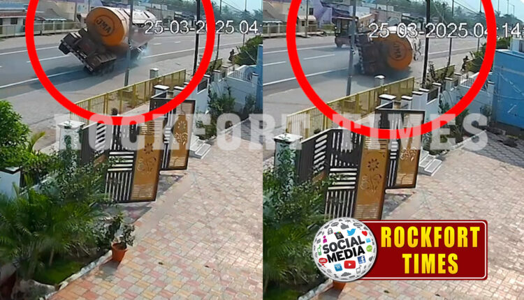 துறையூர் அருகே சாலையில் சென்று கொண்டிருந்த லாரி திடீரென கவிழ்ந்ததில் இருசக்கர வாகனத்தில் சென்ற பெண் படுகாயம்…! (பதை, பதைக்க வைக்கும் வீடியோ)