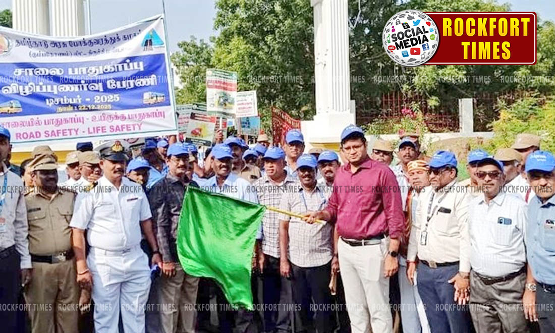 திருச்சி மாவட்ட ஆட்சியரகத்தில் இன்று (22.12.2025) தமிழ்நாடு அரசு போக்குவரத்துக் கழகம், (கும்பகோணம் லிட்) திருச்சிராப்பள்ளி மண்டலத்தின் சார்பில் “விபத்தில்லா தமிழ்நாடு” என்பதை வலியுறுத்தும் விதமாக பொதுமக்களுக்கு சாலை பாதுகாப்பு ஏற்படுத்தும் வகையில், சாலை பாதுகாப்பு விழிப்புணர்வு பேரணியை மாவட்ட ஆட்சித்தலைவர் வே. சரவணன், கொடியசைத்து தொடங்கி வைத்தார். இந்நிகழ்வில் தமிழ்நாடு அரசு போக்குவரத்து கழகம் திருச்சிராப்பள்ளி மண்டல பொது மேலாளர் சதீஷ்குமார், துணை மேலாளர்கள் ராமநாதன், புகழேந்திராஜ், கார்த்திகேயன், வட்டார போக்குவரத்து அலுவலர்கள் ப. சுரேஷ்பாபு, த. நடராஜன், போக்குவரத்துத்துறை மற்றும் காவல் துறை அலுவலர்கள், பேராசிரியர்கள், பள்ளி மற்றும் கல்லூரி மாணவர்கள், அரசு அலுவலர்கள் உள்ளிட்ட பலர் கலந்து கொண்டனர்.
