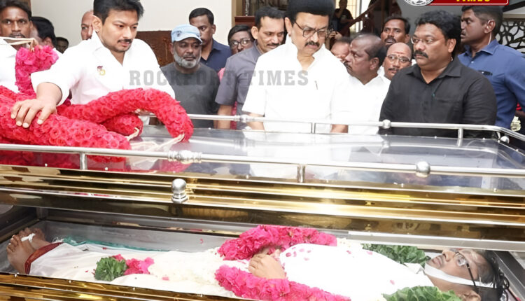 இயக்குநர் இமயம் பாரதிராஜாவின் மகனும், நடிகருமான மனோஜ்(48) உடல் நலக்குறைவு காரணமாக நேற்று (மார்ச் 25) காலமானார். அவரது உடலுக்கு தமிழ் திரையுலகை சேர்ந்தவர்கள், ரசிகர்கள், அரசியல் கட்சி பிரமுகர்கள், உறவினர்கள், நண்பர்கள் அஞ்சலி செலுத்தி வருகின்றனர். சென்னை நீலாங்கரையில் உள்ள பாரதிராஜாவின் வீட்டில் அஞ்சலிக்காக மனோஜின் உடல் வைக்கப்பட்டிருக்கும் நிலையில், தமிழக முதல்வர் ஸ்டாலின் நேரில் சென்று அஞ்சலி செலுத்தினார். அவருடன் துணை முதல்வர் உதயநிதி ஸ்டாலின், அமைச்சர் மா. சுப்பிரமணியன் உள்ளிட்டோரும் அஞ்சலி செலுத்தினர். அப்போது பாரதிராஜா கைகளை பற்றிக் கொண்டு முதல்வர் மு.க.ஸ்டாலின் ஆறுதல் கூறினார்.