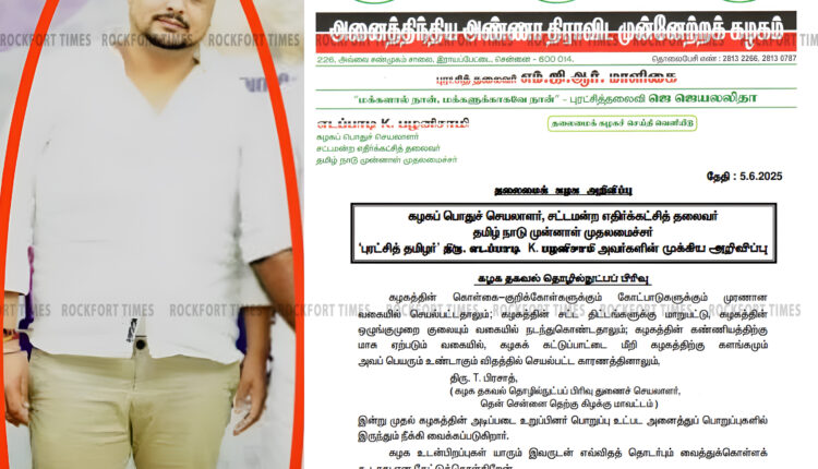 அரசு வேலை வாங்கி தருவதாக பணமோசடி செய்து கைதான அதிமுக நிர்வாகி கட்சியில் இருந்து நீக்கம்- இபிஎஸ் அதிரடி…!