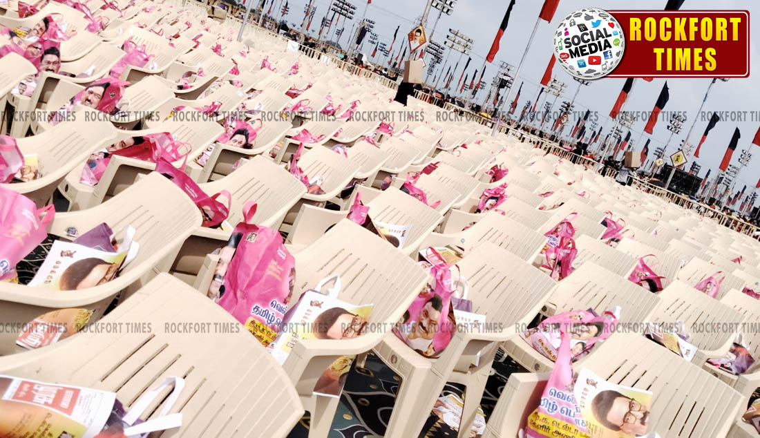 தஞ்சை அருகே செங்கிப்பட்டியில் நடைபெறும் திமுக மகளிர் அணி மாநாட்டில் ஒவ்வொரு நாற்காலி தோறும் பிரியாணி, கூல்ட்ரிங்ஸ், பிஸ்கட் அடங்கிய பைகள்…!