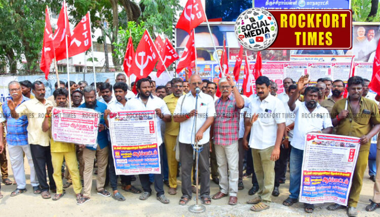 திருச்சி மாநகர் ஆட்டோ, சாலை போக்குவரத்து, அரசு விரைவு போக்குவரத்து தொழிலாளர் சங்கங்கள் சார்பில் மாவட்ட ஆட்சியர் அலுவலகம் அருகில் ஆர்ப்பாட்டம் நடைபெற்றது. ஆர்ப்பாட்டத்திற்கு சாலை போக்குவரத்து தொழிலாளர் சங்க மாவட்ட செயலாளர் சந்திரன் தலைமை வகித்தார். ஆர்ப்பாட்டத்தை விளக்கி சிஐடியூ மாநகர் மாவட்ட செயலாளர் ரெங்கராஜன், மாவட்ட தலைவர் சீனிவாசன், அரசு விரைவு போக்குவரத்து கழக அருள், சாலை போக்குவரத்து தொழிலாளர் சங்க சுரேஷ், அரசு போக்குவரத்து கழக கருணாநிதி, ஆட்டோ சங்க சார்லஸ், வெற்றிவேல் ஆகியோர் பேசினர். முடிவில் அரசு போக்குவரத்து கழக சிங்கராயர் நன்றி கூறினார்.