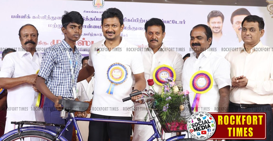 தமிழ்நாடு முழுவதும் 2025- 2026 ம் கல்வியாண்டில் அரசு, அரசு உதவி பெறும் பள்ளிகள் மற்றும் பகுதியாக அரசு நிதியுதவி பெறும் பள்ளிகளில் 11-ம் வகுப்பு பயிலும் 5,34,017 மாணவ, மாணவியருக்கு 241 கோடி ரூபாய் செலவில் மிதிவண்டிகள் வழங்கும் திட்டத்தினை தொடங்கி வைக்கும் அடையாளமாக 1,448 மாணவ, மாணவியருக்கு துணை முதலமைச்சர் உதயநிதி ஸ்டாலின் இன்று(14-11-2025) மிதிவண்டிகளை வழங்கினார். இதுதொடர்பாக வெளியிடப்பட்டுள்ள செய்திக்குறிப்பில், முதல்-அமைச்சர் உத்தரவின்படி, தமிழ்நாட்டில் மேல்நிலைக்கல்வியை ஊக்குவிக்கும் வகையில், பள்ளிகளுக்கு மாணவ, மாணவியர் சிரமமின்றி சென்று வர உதவியாக, அரசு, அரசு உதவி பெறும் மற்றும் பகுதியாக அரசு நிதி உதவி பெறும் பள்ளிகளில் 11-ம் வகுப்பு பயிலும் பிற்படுத்தப்பட்டோர், மிகப்பிற்படுத்தப்பட்டோர், சீர்மரபினர், ஆதிதிராவிடர், பழங்குடியினர் மற்றும் இதர பிரிவைச் சார்ந்த அனைத்து மாணவ, மாணவியருக்கும், எவ்வித வருமான உச்சவரம்பின்றி ஆண்டுதோறும் மிதிவண்டிகள் வழங்கும் திட்டம் செயல்படுத்தப்பட்டு வருகிறது. இத்திட்டத்தின்கீழ் கடந்த நான்கு ஆண்டுகளில் 1,092 கோடி ரூபாய் செலவில் 22 லட்சம் மாணவ, மாணவியருக்கு மிதிவண்டிகள் வழங்கப்பட்டுள்ளன. 2025- 2026 ம் கல்வியாண்டில் 11ம் வகுப்பு பயிலும் 2,38,967 மாணவர்கள் மற்றும் 2,95,050 மாணவியர் என மொத்தம் 5,34,017 மாணவ, மாணவியருக்கு 241 கோடி ரூபாய் செலவில் மிதி வண்டிடிகள் வழங்கப்படவுள்ளன. இத்திட்டத்தின் கீழ் சிவகங்கை மாவட்டத்தில் 4,938 மாணவர்கள் மற்றும் 6,511 மாணவியர் என மொத்தம் 11,449 மாணவ, மாணவியர்களுக்கு 5.18 கோடி ரூபாய் செலவில், மிதிவண்டிகள் வழங்கப்படவுள்ளன. தமிழ்நாடு துணை முதல்-அமைச்சர், குழந்தைகள் தினமான இன்று சிவகங்கை மாவட்டம் காரைக்குடி அழகப்பா மாதிரி மேல்நிலைப்பள்ளியில் நடைபெற்ற நிகழ்ச்சியில் அரசு, அரசு நிதி உதவி மற்றும் பகுதியாக நிதி உதவி பெறும் 8 பள்ளிகளைச் சேர்ந்த 576 மாணவர்கள் மற்றும் 872 மாணவிகள் என மொத்தம் 1448 மாணவ, மாணவியருக்கு மிதிவண்டிகளை வழங்கி, தமிழ்நாடு முழுவதும் 2025- 2026 ஆம் கல்வியாண்டில் அரசு, அரசு உதவி பெறும் பள்ளிகள் மற்றும் பகுதியாக அரசு நிதியுதவி பெறும் பள்ளிகளில் 11ம் வகுப்பு பயிலும் 5,34,017 மாணவ, மாணவியருக்கு 241 கோடி ரூபாய் செலவில் மிதிவண்டிகள் வழங்கும் திட்டத்தினை தொடங்கி வைத்தார். மேலும், கல்விப் பணியில் முன்னேற்றம் காணவும், பள்ளிகளிடையே போட்டி மனப்பான்மையினை ஊக்குவிக்கவும், ஒவ்வொரு ஆண்டும் மாவட்டத்திலுள்ள 3 சிறந்த பள்ளிகளைத் தேர்வு செய்து மாவட்ட வாரியாக சுழற்கேடயங்கள் வழங்கப்பட்டு வருகிறது. 2024-25 ஆம் கல்வியாண்டில் ஊராட்சி, நகராட்சி, மாநகராட்சி மற்றும் அரசு நிதியுதவி பெறும் தொடக்க மற்றும் நடுநிலைப் பள்ளிகளி