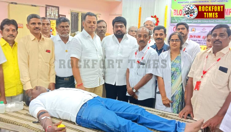 இந்தியன் ரெட் கிராஸ் சொசைட்டி திருச்சி கிழக்கு, மகாத்மா காந்தி நினைவு அரசு மருத்துவமனை மற்றும் திருச்சி யூத் ரெட் கிராஸ் சொசைட்டி ஆகியவை இணைந்து இன்று(25-01-2025) ரத்ததான முகாமை நடத்தின. இந்த முகாம், திருச்சி எஸ்.ஆர்.சி.கல்லூரி அருகே உள்ள ஸ்ரீஸ்ருதி மஹாலில் நடந்தது. இந்தியன் ரெட் கிராஸ் சொசைட்டி திருச்சி கிழக்கு தலைவர் கே.சுப்பிரமணியன் முகாமிற்கு தலைமை தாங்கினார். துணைத்தலைவர் பி.சங்கர் வரவேற்று பேசினார். சிறப்பு விருந்தினராக இந்தியன் ரெட் கிராஸ் சொசைட்டி திருச்சி மாவட்ட தலைவர் மற்றும் இந்திரா கணேசன் கல்வி நிறுவனங்களின் செயலாளர் ஜி.ராஜசேகரன் கலந்து கொண்டு சிறப்புரையாற்றினார். முகாமை ராக்போர்ட் டைம்ஸ் வார இதழ் முதன்மை செய்தி ஆசிரியர் எஸ்.ஆர். லெக்ஷ்மிநாராயணன், கௌரவ விருந்தினர் திருச்சி பாரதிதாசன் பல்கலைக்கழக ஒய்ஆர்சி மண்டல ஒருங்கிணைப்பாளர் எஸ்.கணேசன் ஆகியோர் தொடங்கி வைத்தனர். முகாமில் பலர் ஆர்வமுடன் வருகை தந்து ரத்த தானம் செய்தனர்.