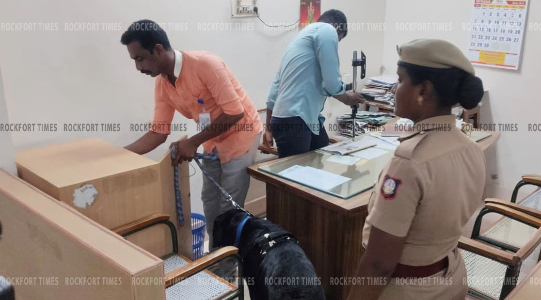 ஆனால், வெடிகுண்டு எதுவும் சிக்கவில்லை. வெறும் புரளி என்பது தெரிய வந்தது. இருந்தாலும் மின்னஞ்சல் அனுப்பியது யார் என்பது குறித்து போலீசார் விசாரணை மேற்கொண்டு வருகின்றனர். இதேபோல சமீபத்தில் திருச்சி மாநகராட்சி அலுவலகம் மற்றும் கலெக்டர் அலுவலகத்துக்கு வெடிகுண்டு மிரட்டல் விடுக்கப்பட்டது குறிப்பிடத்தக்கது.
