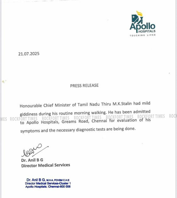 சென்னை அப்போலோ மருத்துவமனையில் முதல்-அமைச்சர் மு.க.ஸ்டாலின் அனுமதி- துணை முதல்வர் உதயநிதி வருகை…!