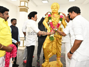 திருச்சி மாவட்டம், மணப்பாறையில் நடைபெற்று வரும் சாரண, சாரணியர் இயக்க வைர விழா மற்றும் முன்னாள் முதல்வர் மு.கருணாநிதி நூற்றாண்டு நினைவு பெருந்திரளணி நிறைவு விழா நிகழ்ச்சிகள் இன்று(02-02-2025) நடக்கின்றன. இதன் நிறைவு விழாவில் பங்கேற்பதற்காக தமிழ்நாடு முதல்வர் மு.க.ஸ்டாலின் விமானம் மூலம் திருச்சி வந்தடைந்தார். அப்போது அவருக்கு திமுக நிர்வாகிகள் சார்பில் உற்சாக வரவேற்பு அளிக்கப்பட்டது.