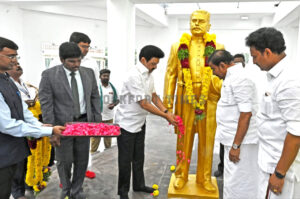அதனைத்தொடர்ந்து அவர், திருச்சி மத்திய பேருந்து நிலையம் அருகே அமைக்கப்பட்டுள்ள முத்தரையர் மணிமண்டபம், நீதிக்கட்சியின் வைரத்தூணாக விளங்கிய சர்.ஏ.டி.பன்னீர் செல்வம் மணிமண்டபம், தமிழ்த் திரையுலகின் முதல் சூப்பர் ஸ்டார் எம்.கே.தியாகராஜ பாகவதர் மணி மண்டபங்களை பார்வையிட்டு அவர்கள் மூவரின் சிலைகளுக்கு மாலை அணிவித்து மரியாதை செலுத்தினார். அதேபோல, அங்கு ரூ.4 கோடியே 3 லட்சம் செலவில் அமைக்கப்பட்டுள்ள நூலகத்தையும் பார்வையிட்டு ஆய்வு செய்தார். அப்போது அவர், மணிமண்டபத்தில் வரலாற்றை விளக்கக்கூடிய புகைப்படங்களை வைக்க வேண்டும் என்றும், மணிமண்டபத்தை சுற்றிலும் வளர்ந்துள்ள புதர்களை அகற்றி அழகுபடுத்த வேண்டும் என அறிவுறுத்தினார். இந்த ஆய்வின்போது அமைச்சர்கள் கே.என்.நேரு, அன்பில் மகேஷ் பொய்யாமொழி, சட்டமன்ற உறுப்பினர் பழனியாண்டி, மாவட்ட ஆட்சியர் பிரதீப்குமார், மாநகராட்சி ஆணையர் சரவணன் உட்பட பலர் உடன் இருந்தனர்.