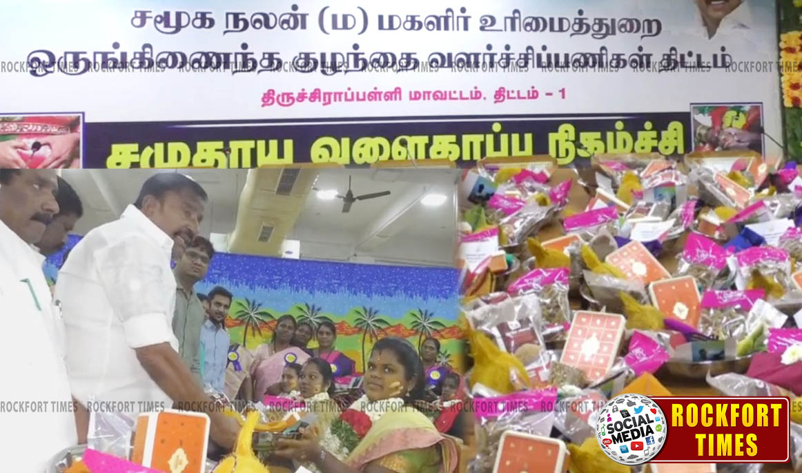 தமிழ்நாடு அரசு சமூகநலன் மற்றும் மகளிர் உரிமைத்துறை, ஒருங்கிணைந்த குழந்தைகள் வளர்ச்சி பணிகள் திட்டம் சார்பில் கர்ப்பிணிகளுக்கு சமுதாய வளைகாப்பு விழா தமிழகம் முழுவதும் நடத்தப்பட்டு வருகிறது. அந்த வகையில் இன்று(14-02-2026) திருச்சி மாவட்ட ஆட்சியர் அலுவலகத்தில் கர்ப்பிணிகளுக்கு சமுதாய வளைகாப்பு விழா நடைபெற்றது. விழாவிற்கு மாவட்ட ஆட்சியர் வே.சரவணன் தலைமை தாங்கினார். சிறப்பு விருந்தினராக நகராட்சி நிர்வாக துறை அமைச்சர் கே.என்.நேரு, தொழிலாளர் நலத்துறை அமைச்சர் சி.வி. சண்முகம், மாநகராட்சி ஆணையர் மதுபாலன், மாநகராட்சி மேயர் மு.அன்பழகன் மற்றும் சமூக நலத்துறை அதிகாரிகள், அலுவலர்கள் பங்கேற்றனர். இந்த நிகழ்வில் 100 கர்ப்பிணி பெண்களுக்கு மங்கள பொருட்கள் மற்றும் ஆயிரம் நாட்கள் குழந்தைகளை வளர்க்கும் கையேடும் வழங்கப்பட்டது.