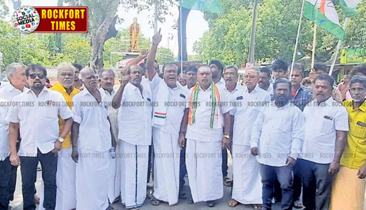 கூறப்படுகிறது. இதற்கு காங்கிரசார் கடும் எதிர்ப்பு தெரிவித்தனர். இந்தநிலையில் தமிழ்நாடு காங்கிரஸ் கமிட்டி மாநில பொதுச் செயலாளர் வழக்கறிஞர் சரவணன் தலைமையில் காமராஜர் பேரவை மாவட்ட தலைவர் சிவாஜி சண்முகம், தமிழ்நாடு- பாண்டிச்சேரி பார் கவுன்சில் உறுப்பினர் ராஜேந்திரகுமார் ஆகியோர் முன்னிலையில் நிர்வாகிகள் கள்ளத்தெரு குமார், வெல்லமண்டி பாலசுப்பிரமணியன், அண்ணா சிலை விக்டர், காங்கிரஸ் கோட்டத் தலைவர்கள் ஜெயம் கோபி, சம்சுதீன், மார்க்கெட் மாரியப்பன், தியாகராஜன், கிருஷ்ணமூர்த்தி, நிர்மல்குமார், நாச்சி குறிச்சி அருண் பிரசாத், சண்முகம், சகாயராஜ், சிவகிரி