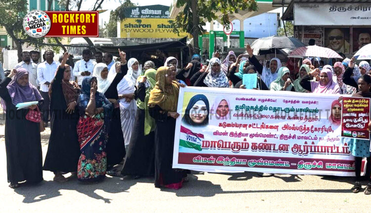 தமிழகத்தில் பெண்களுக்கு எதிரான பாலியல் வன்கொடுமைகளை கண்டித்து திருச்சியில் ஆர்ப்பாட்டம்…!