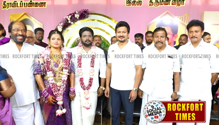 திருச்சி திராவிட பண்ணை டி.வி.முத்துகிருஷ்ணன் இல்ல திருமணத்தை நடத்தி வைத்து மணமக்களை வாழ்த்திய துணை முதலமைச்சர் உதயநிதி ஸ்டாலின்…!