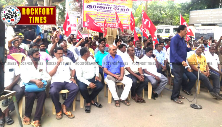 2021 சட்டமன்ற தேர்தலின்போது கொடுத்த வாக்குறுதியை நிறைவேற்ற கோரியும், பல ஆண்டு காலமாக சம்பளம் இல்லாமல் கூப்பிட்டவுடன் வந்து பணியாற்றும் மின் வாரிய ஒப்பந்த ஊழியர்களுக்கு தினக்கூலி வழங்க வலியுறுத்தியும் தமிழ்நாடு மின் ஊழியர் மத்திய அமைப்பின் திருச்சி மண்டலம் சார்பில் தென்னூர் தலைமை பொறியாளர் அலுவலகம் முன் இன்று(23-01-2025) தர்ணா போராட்டம் நடைபெற்றது. போராட்டத்துக்கு மாநில துணைத்தலைவர் ரங்கராஜன் தலைமை தாங்கினார். வட்டச் செயலாளர்கள் டி.பழனியாண்டி (திருச்சி), பி.நடராஜன் (புதுக்கோட்டை), எம். பன்னீர்செல்வம் (பெரம்பலூர்), ஆர்.திருமலைசாமி (திண்டுக்கல்) ஆகியோர் முன்னிலை வகித்தனர். திருச்சி மண்டல செயலாளர் எஸ்.அகஸ்டின் போராட்டத்தை தொடங்கி வைத்து பேசினார். போராட்டத்தின் போது பிரிவு அலுவலகங்களிலும், உபமின் நிலையங்களிலும் ஒப்பந்ததாரர் மூலமாக தினக்கூலி வழங்கி ஒப்பந்த தொழிலாளர்களை நியமிப்பதை கைவிட்டு, காலிப்பணியிடங்களில் நேரடியாக மின் வாரியமே ஒப்பந்த ஊழியர்களை பணி அமர்த்தி தினக்கூலி வழங்க வேண்டும். நுகர்வோருக்கு தடையின்றி மின்சாரம் வழங்கும் அன்றாட பணிகள் செய்யும் கீழ்மட்ட பணியிடங்களை பூர்த்தி செய்யாததால் வேலை பளுவை சுமப்பதால் தினம், தினம் விபத்து, உயிர்ப்பலி ஏற்படுவதை தடுத்திட ஒப்பந்த ஊழியர்களை பணியில் அமர்த்த வேண்டும் ஆகிய கோரிக்கைகளை வலியுறுத்தி கோஷங்கள் எழுப்பப்பட்டன. இதில் மின்வாரிய ஊழியர்கள் திரளாக கலந்து கொண்டனர். முடிவில் திருச்சி வட்டத்தலைவர் நடராஜன் நன்றி கூறினார்.