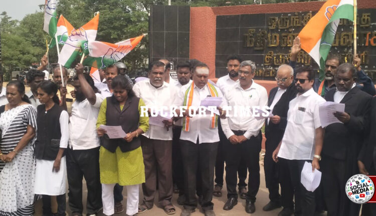 ராகுல்காந்தி மீது வழக்கு பதிவு :திருச்சி நீதிமன்றம் முன்பு காங்கிரஸ் வழக்கறிஞர் பிரிவு கண்டன ஆர்ப்பாட்டம்…!