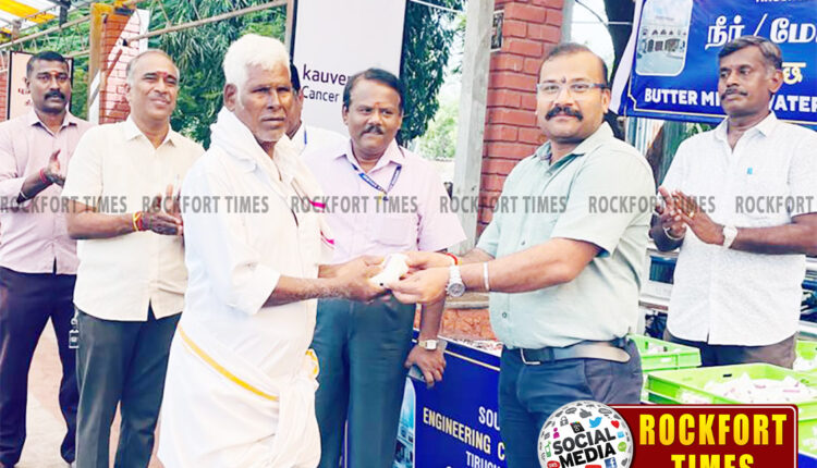 திருச்சி ரயில் நிலையத்தில் பயணிகளுக்கு இலவச நீர்மோர் மற்றும் குடிநீர் வழங்கும் நிகழ்ச்சி இன்று( ஜூன் 19) நடைபெற்றது. திருச்சி கோட்ட ரயில்வே மேலாளர் எம்.எஸ். அன்பழகன் பயணிகளுக்கு நீர்மோர் மற்றும் குடிநீர் வழங்கி இதனை தொடங்கி வைத்தார். இந்த நிகழ்வில் மூத்த கோட்ட பொறியாளர் (ஒருங்கிணைப்பு )பி.நந்தலால், மூத்த அதிகாரிகள், தெற்கு ரயில்வே பொறியியல் ஒப்பந்ததாரர்கள் நலச்சங்க உறுப்பினர்கள், திருச்சிராப்பள்ளி பிரிவு ரயில்வே ஊழியர்கள் மற்றும் பொதுமக்கள் கலந்து கொண்டனர். இலவச மோர் வழங்கும் ஏற்பாட்டை தெற்கு ரயில்வே பொறியியல் ஒப்பந்ததாரர்கள் நலச் சங்கம் திருச்சி பிரிவு தலைவர் குமார் நந்தகோபால், செயலாளர் டி. மோகன் ரமணா, பொருளாளர் சி. ரமேஷ் மற்றும் சங்கத்தின் உறுப்பினர்கள் செய்துள்ளனர். இந்த இலவச மோர் மற்றும் குடிநீர் விநியோகம் ஜூன் 19 முதல் ஜூலை 10 வரை செயல்படும் என தெரிவிக்கப்பட்டுள்ளது.