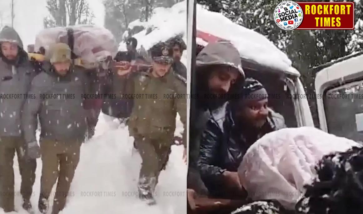 கடும் பனிப்பொழிவு, சாலையை மறைத்த பனிக்கட்டிகள்: காஷ்மீரில் பிரசவ வலியால் துடித்த பெண்ணை தோளில் தூக்கிச் சென்று காப்பாற்றிய ராணுவ வீரர்கள்…! (வீடியோ இணைப்பு)