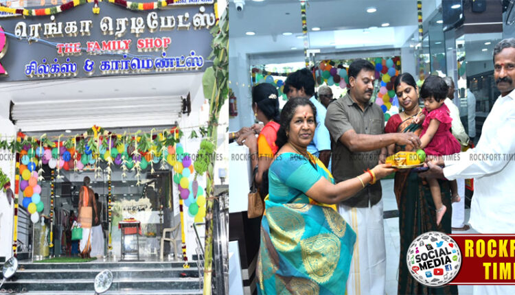திருச்சி, வயலூர் ரோடு ரெட்டை வாய்க்கால் ரெங்கா காம்ப்ளக்ஸில் ரெங்கா ரெடிமேட்ஸ் ஷோரூம் திறப்பு விழா நேற்று ( ஜனவரி -1 ) நடைபெற்றது. புதிய ஷோரூமை ரெங்கா நகர் குடியிருப்போர் நலச்சங்க செயலாளர் தமிழரசன் திறந்து வைத்தார்.