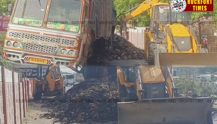 கோவையில் இருந்து திருச்சி நோக்கி குப்பைக் கழிவுகளை ஏற்றிக்கொண்டு லாரி ஒன்று வந்து கொண்டிருந்தது. அதனை சத்யராஜ் என்பவர் ஓட்டி வந்தார். அந்த லாரி இன்று( ஜூன் 6) அதிகாலை திருவானைக்காவல் அருகே வந்து கொண்டிருந்த போது திடீரென கழிவுகள் சரிந்து நடுரோட்டில் கொட்டியது. விபரீதத்தை உணர்ந்த டிரைவர் உடனடியாக லாரியை நிறுத்தினார். இதனால், அந்த வழியாக போக்குவரத்து பாதிக்கப்பட்டது. இதுகுறித்து தகவல் அறிந்த போலீசார் மற்றும் மாநகராட்சி அதிகாரிகள் சம்பவ இடத்திற்கு விரைந்து சென்றனர். பின்னர் 2 பொக்லைன் இயந்திரங்கள் வரவழைக்கப்பட்டன. ஒரு பொக்லைன் பக்கவாட்டில் லாரி கவிழ்ந்து விடாமல் முட்டுக்கொடுத்து நிறுத்தப்பட்டது. மற்றொரு பொக்லைன் லாரியில் இருந்த குப்பைகளை அகற்றியது. இந்தப் பணி சுமார் 5 மணி நேரம் நீடித்தது. இதன் காரணமாக