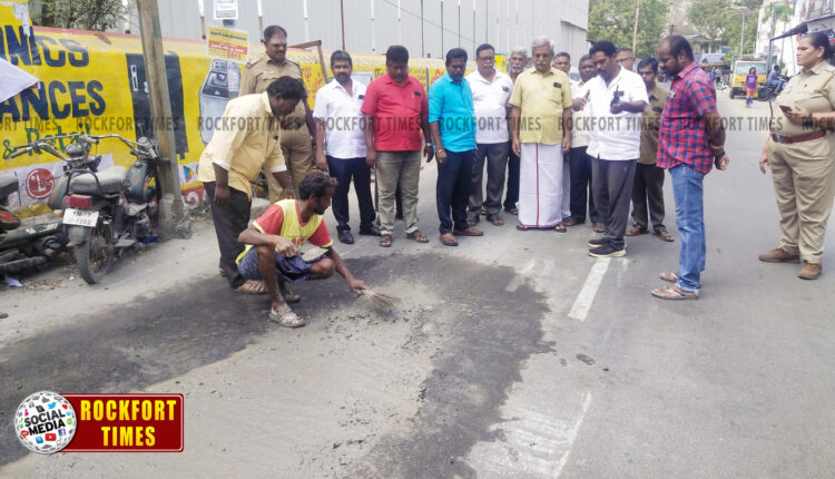 திருச்சி மாநகராட்சிக்கு உட்பட்ட 27வது வார்டில் உள்ள ஜெனரல் பஜார் சந்திப்பில் இருந்து பட்டாபிராமன் சாலை மாருதி மருத்துவமனை வரை உள்ள சாலையின் நடுவே நீண்ட பள்ளங்கள் இருந்தது. இதனால் வாகன ஓட்டிகள் மிகவும் சிரமப்படுவதுடன், அடிக்கடி விபத்துக்கள் ஏற்படுகிறது. ஆகவே , இந்த சாலையில் உள்ள பள்ளங்களை சீரமைக்க வலியுறுத்தி மார்க்சிஸ்ட் கம்யூனிஸ்ட் கட்சி மேற்கு பகுதிக்குழு சார்பில் கடந்த சில தினங்களுக்கு முன் மாநகராட்சி அதிகாரிகளிடம் மனு கொடுக்கப்பட்டது. ஆனால் இதுநாள் வரை எவ்வித நடவடிக்கையும் எடுக்காததால் அந்த பள்ளங்களுக்கு வெள்ளை துணி போர்த்தி, மலர் வளையம் வைத்து அஞ்சலி செலுத்தி போராட்டம் நடைபெறும் என அறிவிக்கப்பட்டது. இதை முன்னிட்டு சிபிஎம் மேற்கு பகுதி செயலாளர் ரபீக் அஹமது, தலைமையில் மாநில கட்டுப்பாட்டு குழு தலைவர் ஸ்ரீதர், மாநகர் மாவட்ட செயலாளர் வெற்றிச்செல்வம், மூத்த தோழர் பழனியப்பன், மாவட்டக்குழு உறுப்பினர் சீனிவாசன், பகுதிக்குழு உறுப்பினர்கள் ஆசிக் அலி, ஷேக் மொய்தீன், கையூம், மோகன், கிளை செயலாளர்கள் சுப்பிரமணி, அக்பர் அலி, செல்வம் ஆகியோர் இன்று (ஏப்ரல் 29) ஒன்று திரண்டனர். இதுகுறித்து தகவல் அறிந்த மாநகராட்சி அதிகாரிகள் சம்பந்தப்பட்ட இடத்திற்கு வந்து ஊழியர்கள் மூலம் உடனடியாக பள்ளத்தை சீரமைக்கும் பணியில் ஈடுபட்டனர். இதையடுத்து போராட்டம் கைவிடப்பட்டது.