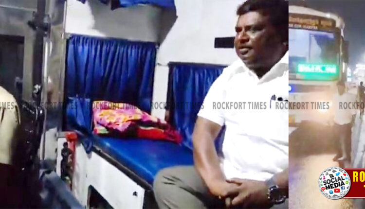 இரவு நேரத்தில் அரசு விரைவு பேருந்தில் ஏறி திடீரென ஆய்வு மேற்கொண்ட அமைச்சர் எஸ்.எஸ்.சிவசங்கர்…! (வீடியோ இணைப்பு)