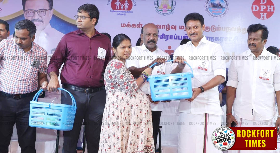 திருச்சியில் ‘நலம் காக்கும் ஸ்டாலின்’ மருத்துவ முகாம்: கர்ப்பிணிகளுக்கு ஊட்டச்சத்து பெட்டகத்தை அமைச்சர்கள் மா.சுப்பிரமணியன், அன்பில் மகேஷ் வழங்கினர் !
