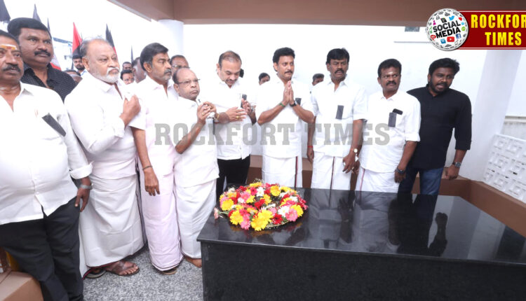 திருச்சி தெற்கு மாவட்ட திமுக சார்பாக மொழிப்போர் தியாகிகள் நினைவிடத்தில் அமைச்சர் அன்பில் மகேஷ் பொய்யாமொழி மலர்வளையம் வைத்து மரியாதை…!