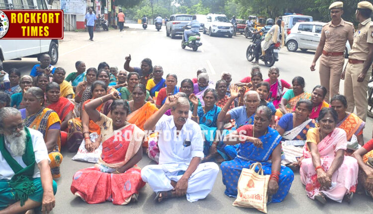 திருச்சி மாநகராட்சியுடன் 10 க்கும் மேற்பட்ட ஊராட்சிகள் இணைக்கப்பட உள்ளதாக தமிழக அரசு அரசாணை வெளியிட்டிருந்தது. இதற்கு எதிர்ப்பு தெரிவித்து வரும் கிராம மக்கள் தொடர்ந்து பல்வேறு கட்டங்களாக போராட்டத்தில் ஈடுபட்டு வருகின்றனர். இதேபோல, இன்று(20-01-2025) குமார வயலூர் கிராமத்தைச் சேர்ந்த பொதுமக்கள் தங்கள் பகுதியை திருச்சி மாநகராட்சியுடன் இணைப்பதற்கு எதிர்ப்பு தெரிவித்து, தென்னிந்திய நதிகள் இணைப்பு விவசாயிகள் சங்க தலைவர் அய்யாக்கண்ணு தலைமையில் கலெக்டர் அலுவலகம் முன்பு சாலை மறியல் போராட்டத்தில் ஈடுபட்டனர். இதனால் அங்கு பரபரப்பு ஏற்பட்டது. இது குறித்த தகவலின் பேரில் கண்டோன்மென்ட் போலீசார் சம்பவ இடத்திற்கு விரைந்து சென்று மறியல் போராட்டம் நடத்தியவர்களிடம் பேச்சுவார்த்தை நடத்தினர். மேலும் அதிகாரிகளும் பொதுமக்களிடம் பேச்சுவார்த்தை நடத்தினர். உங்கள் கோரிக்கை குறித்து கோரிக்கை மனு அளிக்குமாறு அவர்கள் கேட்டுக் கொண்டதால் சாலை மறியலை கைவிட்டு மனு கொடுக்க சென்றனர்.