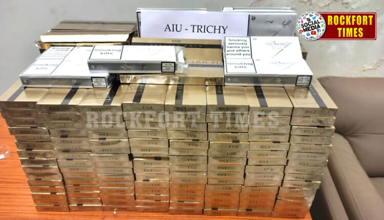 திருச்சி விமான நிலையத்தில் பாக்கெட், பாக்கெட்டாக ரூ.8 லட்சம் மதிப்பிலான வெளிநாட்டு சிகரெட் பறிமுதல்…!