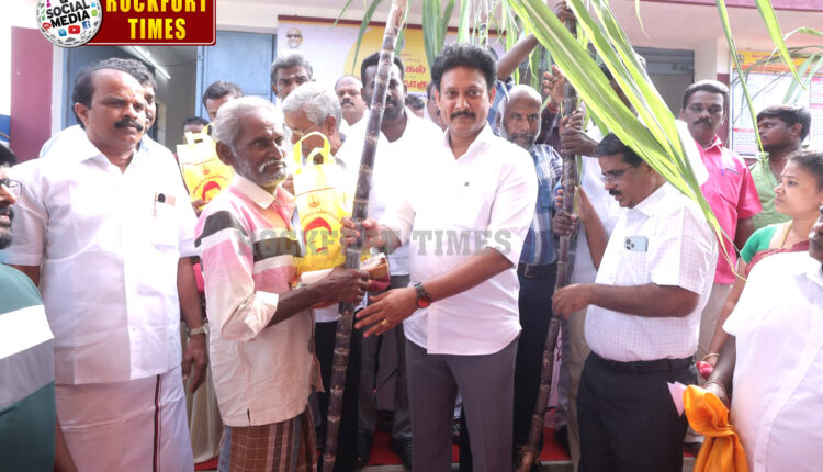 தமிழர் திருநாளாம் பொங்கல் பண்டிகைக்கு தமிழ்நாடு அரசு சார்பில் ரேஷன் கடைகளில் குடும்ப அட்டைதாரர்களுக்கு ஒரு கிலோ பச்சரிசி, ஒரு கிலோ சர்க்கரை, ஒரு முழு கரும்பு, வேட்டி, சேலை வழங்கப்பட்டு வருகிறது. அதேபோல திருவெறும்பூர் சட்டமன்ற உறுப்பினரும், தமிழக பள்ளிக்கல்வித்துறை அமைச்சருமான அன்பில் மகேஷ் பொய்யாமொழி தனது சட்டமன்ற தொகுதிக்கு உட்பட்ட குண்டூர் ஊராட்சியில் பர்மா காலனி பகுதியில் அமைந்துள்ள நியாய விலை கடையில் 953 குடும்ப அட்டைதாரர்களுக்கு விலையில்லா பொங்கல் பரிசு தொகுப்பினை வழங்கி தொடங்கி வைத்தார். இந்நிகழ்வில் வருவாய் கோட்டாட்சியர் அருள், கூட்டுறவு சங்கங்களின் மண்டல இணை பதிவாளர் ஜெயராம், துணை பதிவாளர் பொது விநியோக திட்டம் மற்றும் திருவெறும்பூர் தாசில்தார் ஜெயப்பிரகாசம், மாவட்ட வழங்கல் அலுவலர் (பொறுப்பு) உதயகுமார், திருவெறும்பூர் தெற்கு ஒன்றிய செயலாளர் கங்காதரன் மற்றும் நிர்வாகிகள் உடன் இருந்தனர்.
