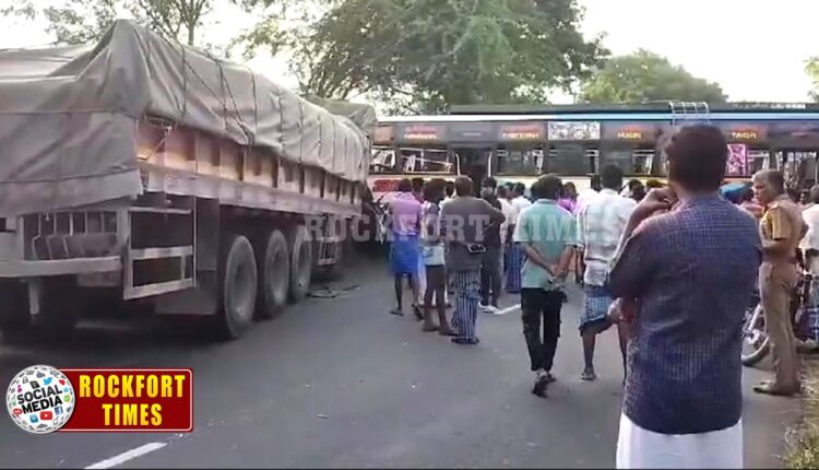 திருச்சி மாவட்டம், குணசீலம் அருகே தனியார் பேருந்து- லாரி நேருக்கு நேர் மோதி விபத்து: 25 பயணிகள் படுகாயம் …! ( வீடியோ இணைப்பு)