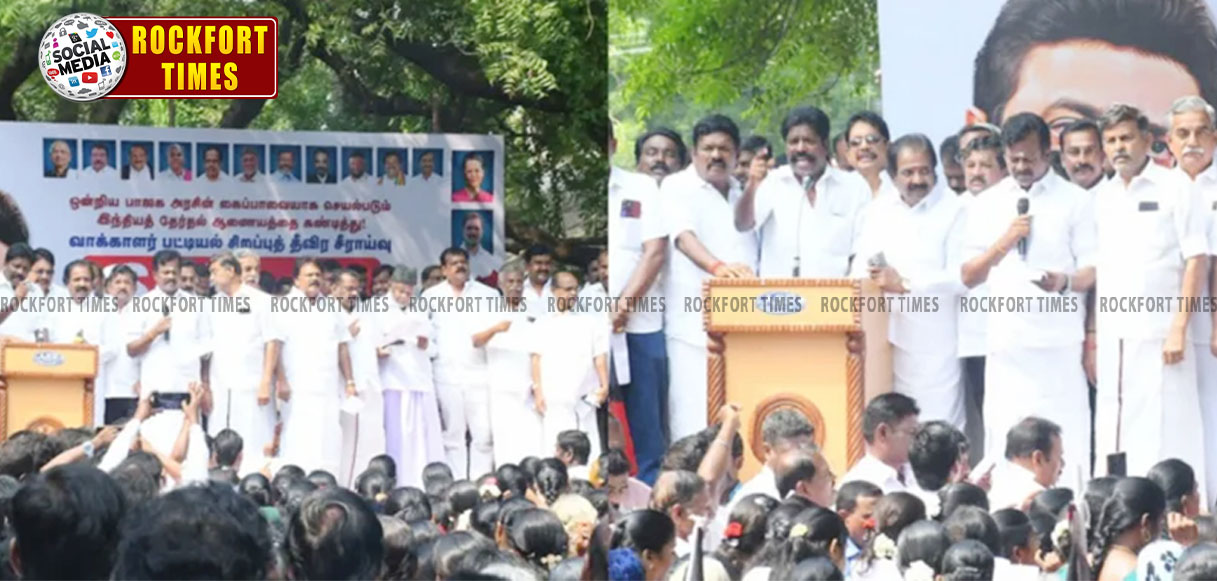 தமிழகத்தில் அடுத்த ஆண்டு (2026) நடைபெற உள்ள சட்டமன்ற தேர்தலை முன்னிட்டு எஸ்.ஐ.ஆர். எனப்படும் வாக்காளர் பட்டியல் தீவிர திருத்த பணியை தேர்தல் ஆணையம் மேற்கொண்டுள்ளது. தேர்தல் ஆணையத்தின் இந்த நடவடிக்கைக்கு எதிராக சுப்ரீம் கோர்ட்டில் தி.மு.க. சார்பில் வழக்கு தொடரப்பட்டுள்ளது. இந்நிலையில் எஸ்.ஐ.ஆர். பணிக்கு எதிர்ப்பு தெரிவித்தும், அதனை கைவிட கோரியும் திமுக மற்றும் அதன் கூட்டணி கட்சிகள் சார்பில் தமிழகம் முழுவதும் இன்று(11-11-2025) ஆர்ப்பாட்டம் நடைபெற்றது. அதேபோல,