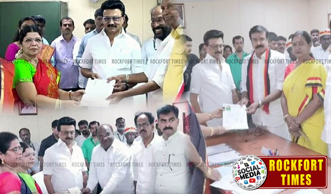 தமிழகத்தில் மாநிலங்களவை எம்.பி.யாக உள்ள தம்பிதுரை, ஜி.கே.வாசன், என்.ஆர்.இளங்கோ, கனிமொழி சோமு, திருச்சி சிவா, பி.செல்வராசு ஆகிய 6 பேரின் பதவிக்காலம் வருகிற ஏப்ரல் 2-ந் தேதியுடன் முடிகிறது. இந்த 6 எம்.பி.க்கள் காலியிடங்களை நிரப்ப தேர்தல் கமிஷன் அறிவிப்பு வெளியிட்டது. அதன்படி வேட்பு மனு தாக்கல் கடந்த பிப்ரவரி 26-ந் தேதி தொடங்கியது. இன்று வேட்புமனு தாக்கல் செய்ய கடைசி நாளாகும். தற்போதுள்ள எம்.எல்.ஏ.க்கள் எண்ணிக்கை அடிப்படையில் தி.மு.க. சார்பில் 4 எம்.பி.க்களையும், அ.தி.மு.க. சார்பில் 2 எம்.பி.க்களையும் போட்டியின்றி தேர்வு செய்ய முடியும். தி.மு.க. தங்களுடைய கூட்டணியில் உள்ள காங்கிரஸ், தே.மு.தி.க.வுக்கு தலா ஒரு இடத்தை ஒதுக்கீடு செய்துள்ளது. தி.மு.க. தன்னிடம் உள்ள 2 எம்.பி.க்கள் இடங்களுக்கான வேட்பாளர்களை நேற்று அறிவித்தது. அதன்படி, திருச்சி சிவா, ஜே.கான்ஸ்டன்டைன் ரவீந்திரன் ஆகியோர் வேட்பாளர்களாக அறிவிக்கப்பட்டுள்ளனர். இதேபோல் காங்கிரஸ் வேட்பாளராக திருச்சியைச் சேர்ந்த கிறிஸ்டோபர் திலக் அறிவிக்கப்பட்டுள்ளார். தே.மு.தி.க. சார்பில் பொருளாளர் சுதீஷ் போட்டியிடுவார் என்று அறிவிக்கப்பட்டுள்ளது. இந்தநிலையில், மாநிலங்களவை தேர்தலுக்கு திமுக வேட்பாளர்களான திருச்சி சிவா, கான்ஸ்டன்டைன் ரவீந்திரன் இருவரும் முதல்-அமைச்சர் மு.க.ஸ்டாலின் மற்றும் கூட்டணிக் கட்சித் தலைவர்கள் முன்னிலையில் இன்று(மார்ச் 5) வேட்புமனுத் தாக்கல் செய்தனர். இதைபோல காங்கிரஸ் வேட்பாளர் கிறிஸ்டோபர் திலக், முதல்-அமைச்சர் மு.க.ஸ்டாலின், காங். தலைவர் செல்வப்பெருந்தகை. காங். தமிழக தேர்தல் பொறுப்பாளர் கிரிஷ் சோடங்கர் முன்னிலையில் மாநிலங்களவை தேர்தலுக்கான வேட்புமனுவை தாக்கல் செய்தார். தேமுதிக வேட்பாளரான எல்.கே.சுதீஷ், முதலமைச்சர் மு.க.ஸ்டாலின் முன்னிலையில் வேட்புமனுத் தாக்கல் செய்தார்.