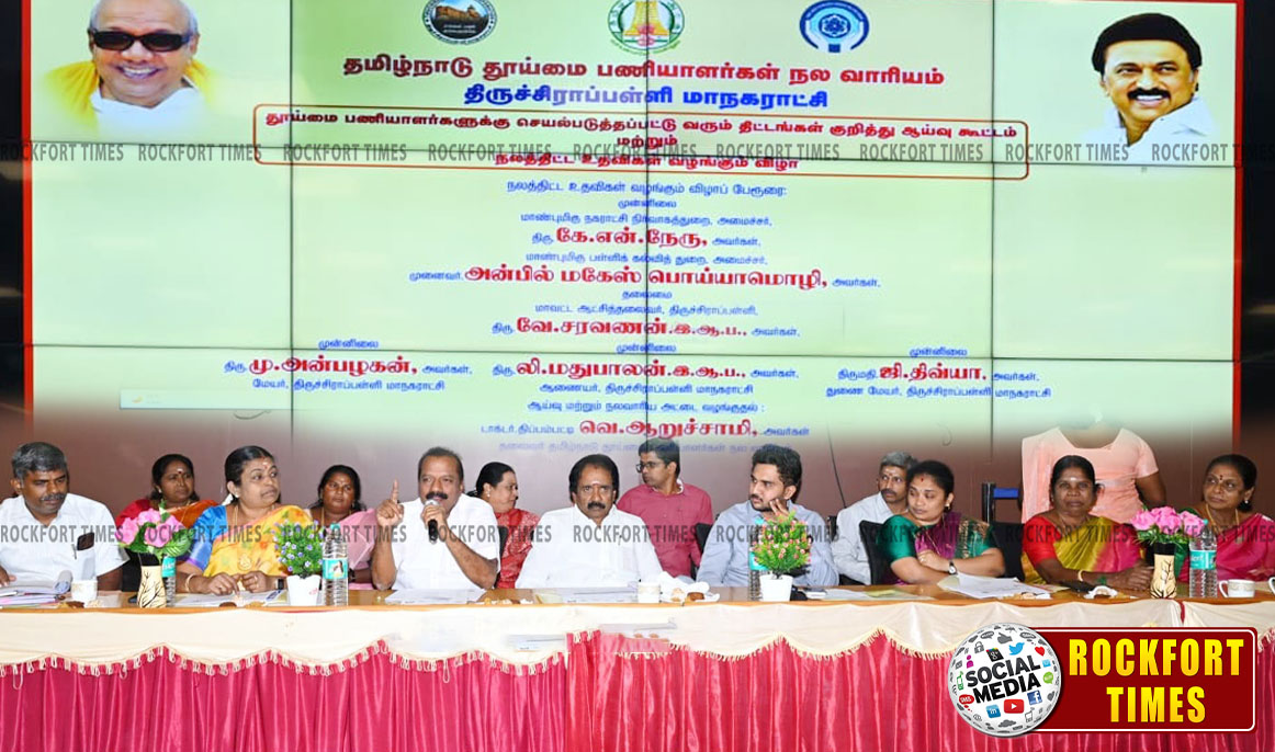 திருச்சி மாநகராட்சியில் தூய்மைப் பணியாளர்களுக்கு செயல்படுத்தப்படும் திட்டங்கள் குறித்து ஆய்வு கூட்டம்…!