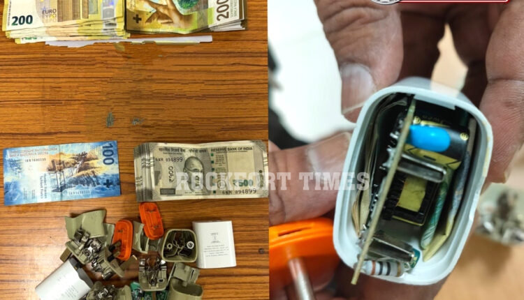 செல்போன் சார்ஜரில் மறைத்து கடத்த முயன்ற ரூ.5 லட்சம் வெளிநாட்டு பணம் பறிமுதல்…- 2 பயணிகளிடம் அதிகாரிகள் விசாரணை…! (வீடியோ இணைப்பு)