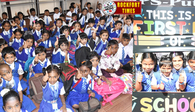 அந்தவகையில் திருச்சி புத்தூர் மாநகராட்சி தொடக்கப்பள்ளியில்( எம்பிஎஸ்) தலைமை ஆசிரியை அம்சவள்ளி மற்றும் ஆசிரியர்கள், பள்ளி மேலாண்மை குழு உறுப்பினர்கள் தலைமையில் மேளதாளங்கள் முழங்கவும், இனிப்பு வழங்கியும் மாணவர்கள் வரவேற்கப்பட்டனர். மேலும், பள்ளி வளாகத்தில் செல்ஃபி பாயிண்ட் அமைக்கப்பட்டு இருந்தது. அதில் புதிதாக பள்ளியில் சேர்ந்த மாணவ, மாணவிகளும் ஏற்கனவே அங்கு பயின்று வரும் மாணவ, மாணவிகளும் ஆர்வத்துடன் நின்று புகைப்படம் எடுத்து கொண்டனர். இதுதவிர புதிதாக சேர்ந்த மாணவர்களுக்கு அவர்களின் வகுப்புகளை கண்டறிய வண்ண ரிப்பன்கள் கைகளில் கட்டி விடப்பட்டது. விடுமுறையை மகிழ்வுடன் கழித்த மாணவர்கள் அதே மகிழ்வுடன் மீண்டும் பள்ளிக்கு வர வேண்டும் என்கிற அடிப்படையில் அனைத்து ஏற்பாடுகளும் செய்யப்பட்டிருந்தது. முதல் நாளே மாணவர்களுக்கு பாடப்புத்தகங்கள் வழங்க வேண்டும் என அரசு அறிவுறுத்தி இருந்த நிலையில் அதற்கான ஏற்பாடுகளும் செய்யப்பட்டிருந்தது. அதேபோல வகுப்பறைக்குள் வந்த மாணவ, மாணவிகளிடம் ஆசிரியர்கள் இன்முகத்துடன் உற்சாகமாக உரையாடினர்.