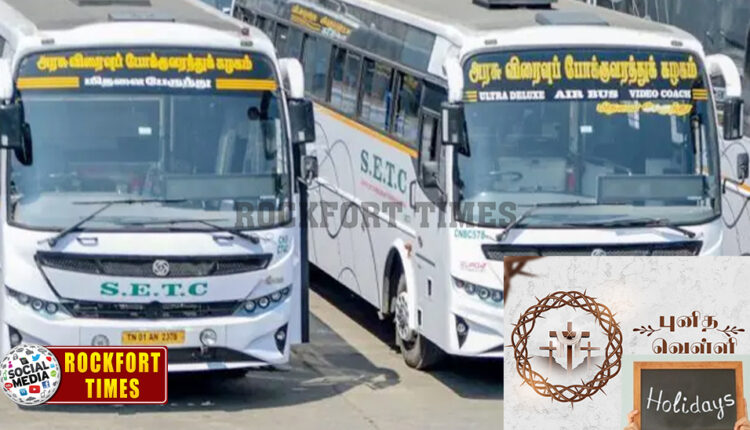 புனித வெள்ளி, ஈஸ்டர் மற்றும் தொடர் விடுமுறை நாட்களை முன்னிட்டு சிறப்பு பேருந்துகள் இயக்கம்…- தமிழ்நாடு அரசு போக்குவரத்து கழகம் ஏற்பாடு!