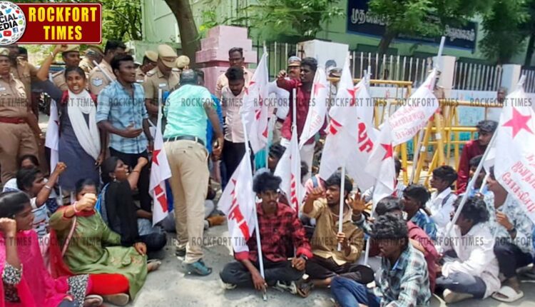 ஏழை மாணவர்களுக்கான கல்வி நிதியை மத்திய அரசு விடுவிக்க கோரி திருச்சி முதன்மை கல்வி அலுவலகத்தை மாணவர் சங்கத்தினர் முற்றுகையிட்டு போராட்டம்…!