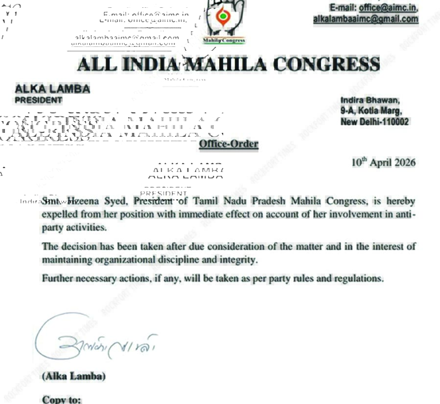 தமிழக சட்டப்பேரவைத் தேர்தல் அறிவிப்பையெடுத்து திமுகவுடன் காங்கிரஸ் கூட்டணி உறுதியானது. காங்கிரஸ் வேட்பாளர் பட்டியல் உள்ளிட்டவை குறித்து காங்கிரஸ் எம்.பி. ஜோதிமணி உள்ளிட்டோர் ஏற்கனவே அதிருப்தி தெரிவித்திருந்தனர். தமிழ்நாடு மகளிர் காங்கிரஸ் தலைவர் ஹசீனா சையத், தனக்கு தேர்தலில் போட்டியிட வாய்ப்பு வழங்கப்படவில்லை என்று குற்றம்சாட்டியிருந்தார். இந்நிலையில், அவர் காங்கிரஸ் கட்சியின் அடிப்படை உறுப்பினர் உள்ளிட்ட அனைத்துப் பொறுப்புகளில் இருந்தும் விலகுவதாக அறிவித்துள்ளார். மேலும், தமிழக காங்கிரஸ் நிர்வாகிகள் மீது கடும் அதிருப்தி தெரிவித்துள்ளார். இதனைத் தொடர்ந்து, காங்கிரஸ் கட்சி அவரை தமிழ்நாடு மகளிர் காங்கிரஸ் தலைவர் பதவியில் இருந்து நீக்கியதாக அறிவிப்பு வெளியிட்டுள்ளது. தலைமை தமக்கு வாய்ப்பு வழங்க முன்வந்தபோதும், இடையீட்டால் அது கிடைக்கவில்லை என ஹசீனா சையத் கூறியதாகவும் தெரிவிக்கப்பட்டுள்ளது.