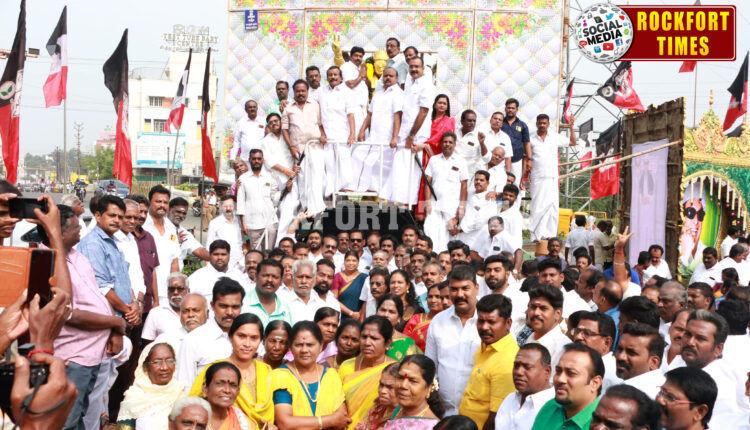ஒத்தக்கடை மணிகண்டன், குருமூர்த்தி, ஆரி, ஜெபா, பொம்மாசி பாலமுத்து, ஜெகதீசன், சிந்தை ராமச்சந்திரன் , என்.பி.வெங்கடாசலம், பொன். அகிலாண்டம், எடத்தெரு பாபு, தர்கா காஜா, வெஸ்லி, கட்பீஸ் ரமேஷ், கயிலைகோபி, செல்லப்பன், என்.டி.மலையப்பன், கல்லுக்குழி முருகன், உறந்தை முத்தையா, கே.சி.பி ஆனந்த், சந்திரசேகர், சிந்தாமணி கிருஷ்ணன், ஜெயந்தி சிவா, ஈஸ்வரன் உள்பட ஏராளமான நிர்வாகிகள் கலந்து கொண்டனர். எம்.ஜி.ஆர்.பிறந்த நாளை முன்னிட்டு அனைவருக்கும் இனிப்பு வழங்கப்பட்டது.