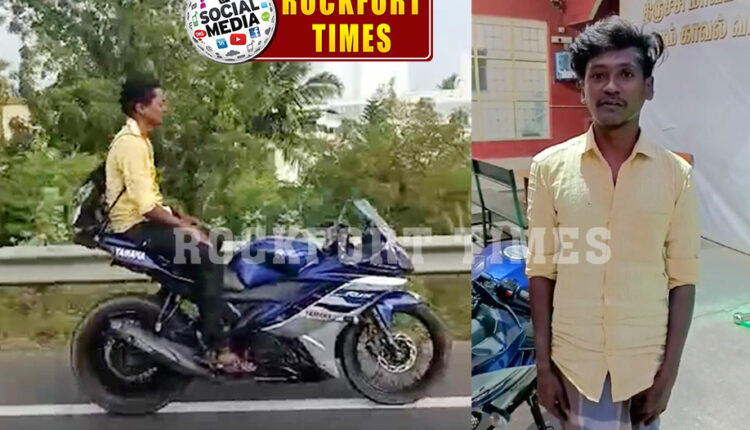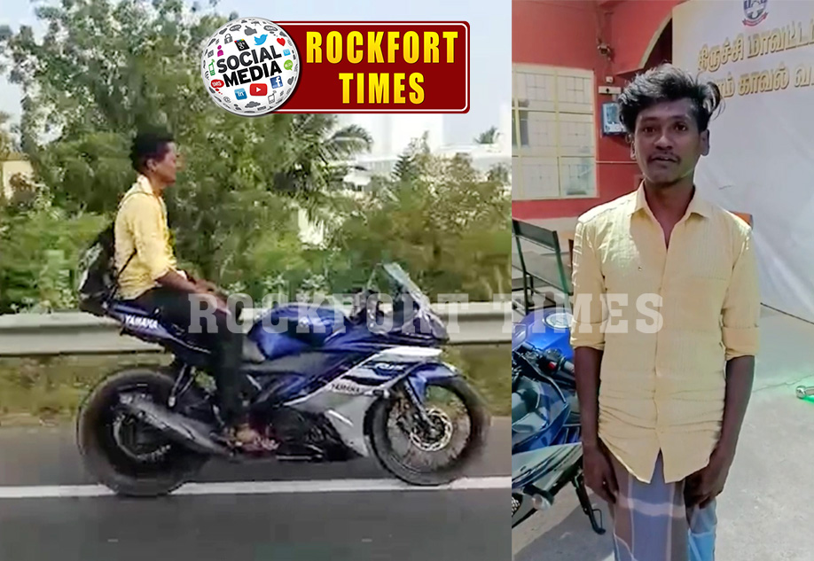 திருச்சி, சமயபுரம் பகுதியில் மோட்டார் சைக்கிளில் “வீலிங்” செய்த வாலிபரை தட்டித் தூக்கியது காவல்துறை…! ( வீடியோ இணைப்பு)
