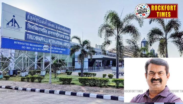 நாம் தமிழர் கட்சி தலைமை ஒருங்கிணைப்பாளர் சீமான் மீது, திருச்சி சரக டிஐஜி வருண்குமார் தொடர்ந்த அவதூறு வழக்கில் ஆஜர் ஆவதற்காக திருச்சி நீதிமன்றத்திற்கு இன்று(08-04-2025) சீமான் வந்திருந்தார். பின்னர் அவர் திருச்சியிலிருந்து விமானம் மூலம் சென்னைக்கு புறப்பட்டார். முன்னதாக அவர் விமான நிலையத்திற்கு வந்த பொழுது அவரை சி ஐ எஸ் எஃப் வீரர்கள் சோதனை செய்தனர். அப்போது அவர் பாக்கெட்டில் சிறிய அளவிலான கத்தி ஒன்று இருந்துள்ளது. விமான நிலையத்துக்குள்ளும், விமானத்திலும் எந்த விதமான ஆயுதங்களும் எடுத்துச் செல்லக்கூடாது என்கிற விதி இருப்பதால் அந்த கத்தியை எடுத்துச் செல்லக்கூடாது என சி ஐ எஸ் எஃப் வீரர்கள் கூறி அதனை அவரிடம் இருந்து பறிமுதல் செய்தனர். அதன்பின் அவர் விமான நிலையத்திற்குள் செல்ல அனுமதிக்கப்பட்டார். இந்த சம்பவத்தால் திருச்சி விமான நிலையத்தில் சிறிது நேரம் பரபரப்பு ஏற்பட்டது.